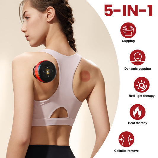 5-in-1 Smart Dynamic Cupping Therapy Set with Red Light, Cupping Kit for Massage Therapy, Electric Cupping Device with 20 Level Temperature and Suction for Back Muscle Soreness (Red)